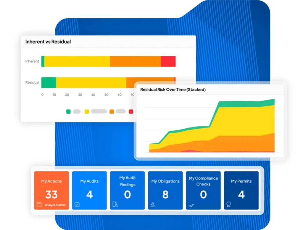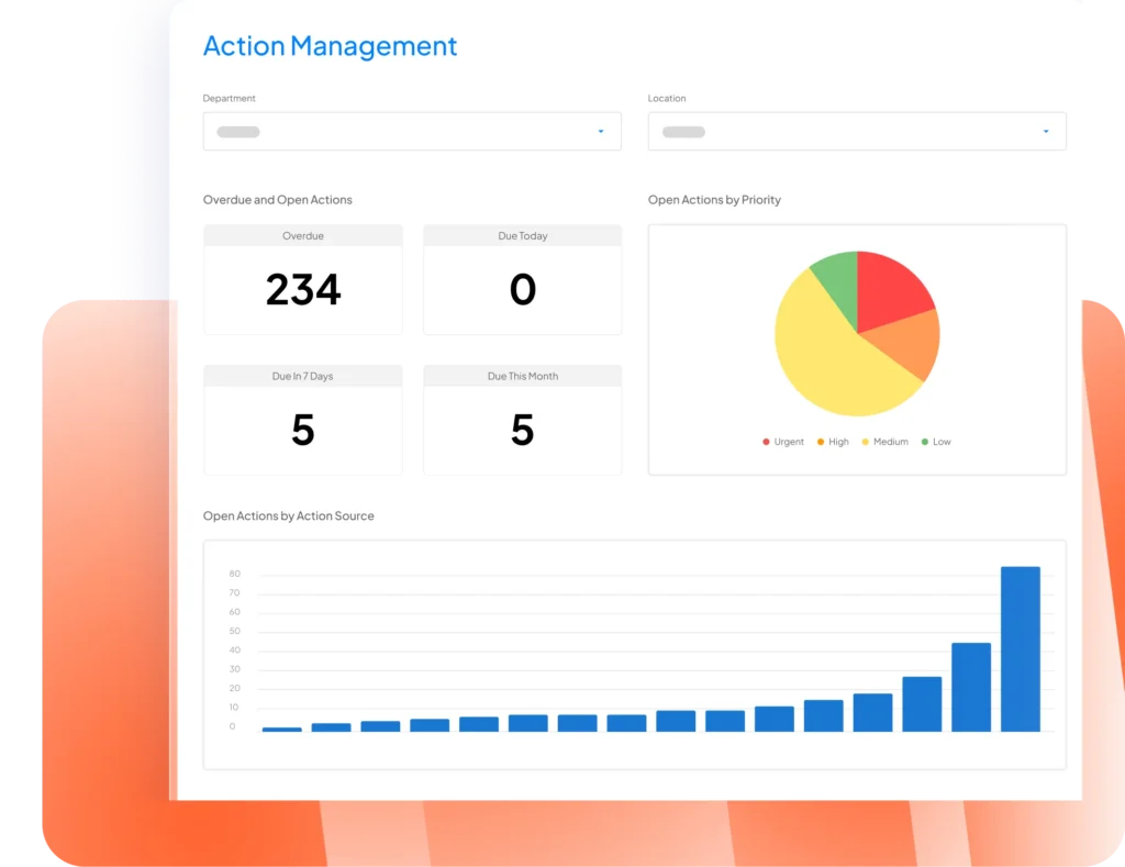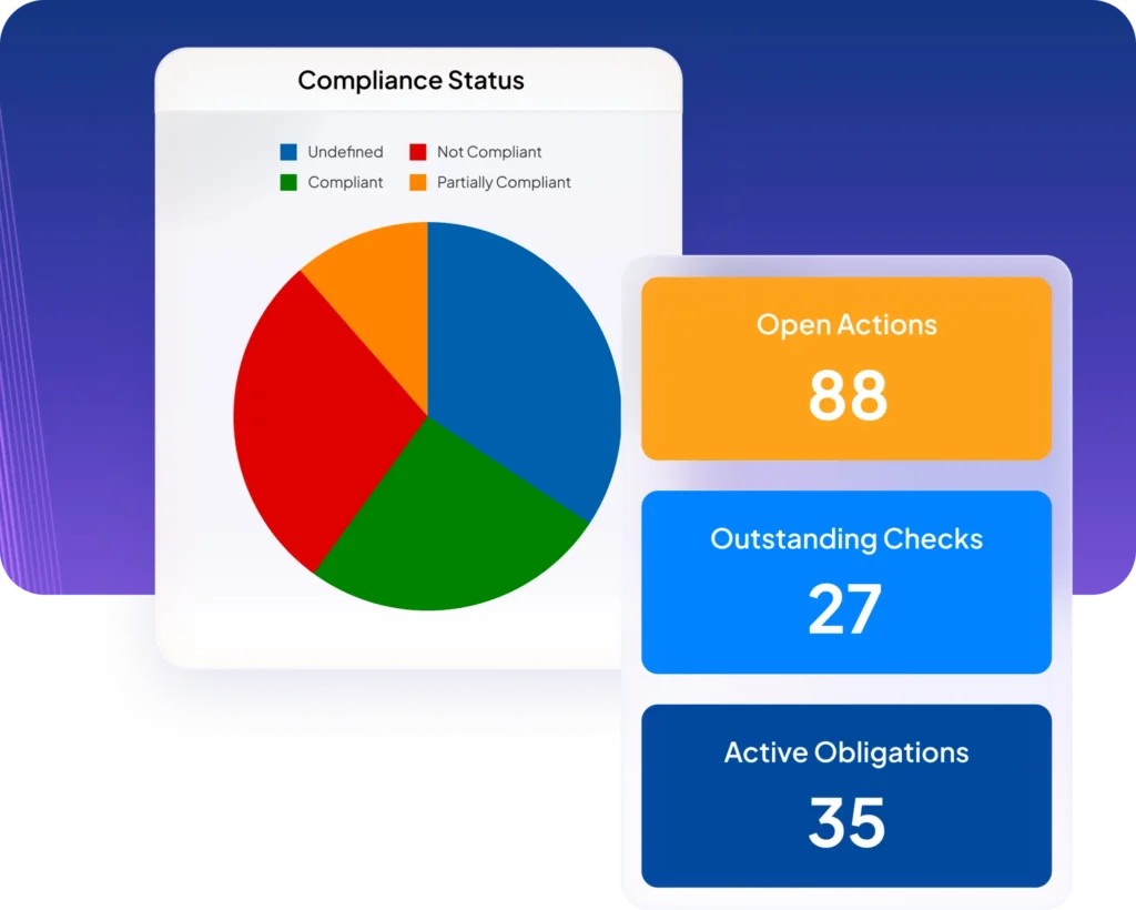 Overdue actions, missing training and out-of-policy trends surface instantly.