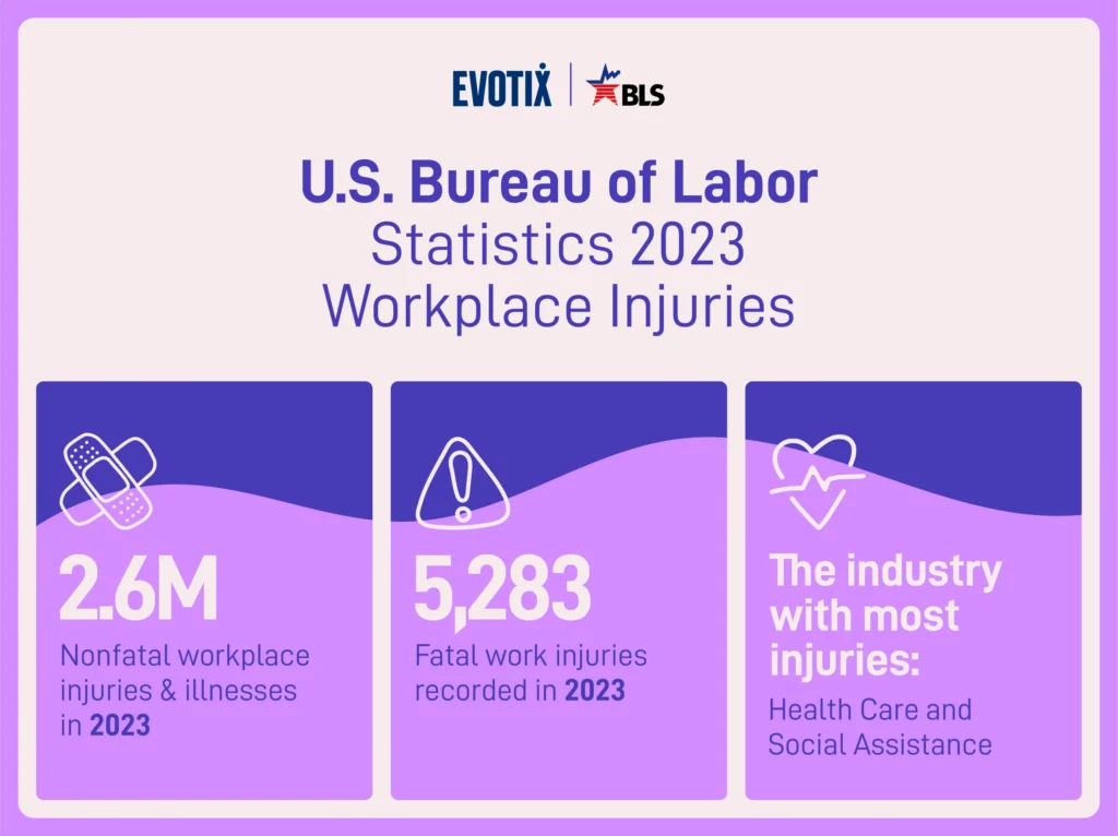 The U.S. Bureau of Labor Statistics (BLS) has released its annual report for nonfatal and fatal occupational injuries and illnesses. While these statistics can be harrowing, recent data fortunately shows a decrease in both areas. From 2022 to 2023, nonfatal injuries and illnesses decreased 8.4% to 2.6 million, and fatalities dropped 3.7% to 5,283. Other key statistics from the BLS census include the following: