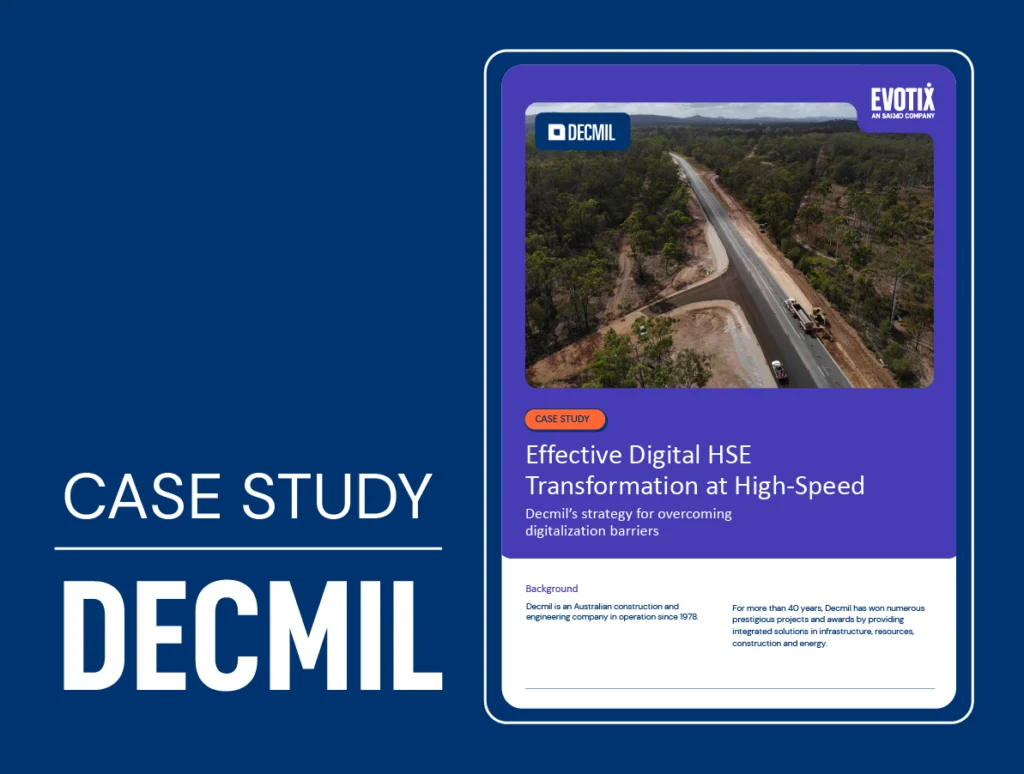 Decmil’s Strategy for Overcoming HSE Digitalization Barriers “Streamlining the data capture and offering a mobile version of the software resulted in a 90% increase in site-based teams using the software within six months of the initial rollout.” Get the case study At a glance Learn How Decmil Successfully Implemented Evotix in Less Than Three Months […]