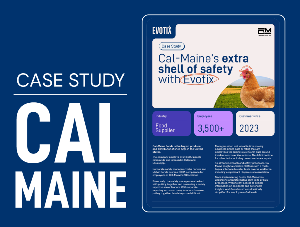 Cal-Maine’s Extra Shell of Safety with Evotix “Senior management think it’s the best thing since sliced bread.” Get the case study At a glance Challenge Before Evotix, EHS, location and senior managers had limited visibility into real-time data across Cal-Maine’s dispersed locations, hindering proactive decision-making. The shift to Evotix resolved this by providing instant access to critical data from all […]