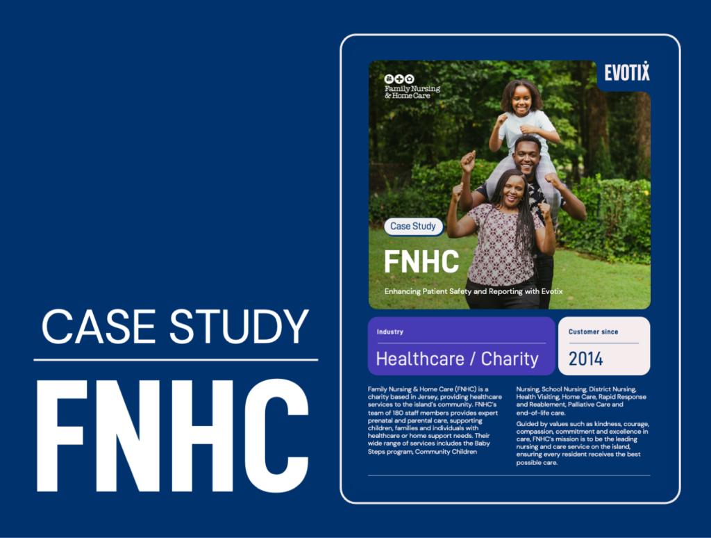 Family Nursing & Home Care Transformed Patient Safety and Reporting with Evotix “When you’ve got an EHS&S system that does everything, why would you use two different systems you need to log into?” Get the case study At a glance Solution When FNHC first partnered with Evotix, they faced a significant challenge: staff hesitated to […]